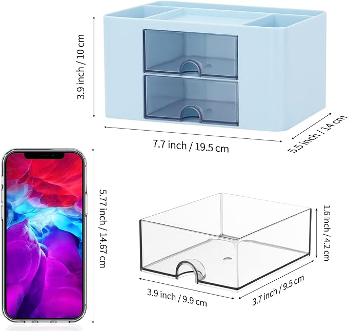- PERFECT SIZE - 7.7*5.5*3.9inch/19.5*14*10cm, it fits easily in the desk. Two small notched supply drawers easy to pull out. Place it without it taking up the too much surface